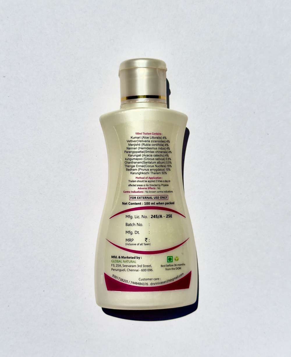 Glovadana is the fourth-generation siddha proprietary product. It is clinically proven for all kind of skin issues. The unique penetrating efficacy to the skin paves way to reach the active herbal properties to the affected region. This action helps for speedy recovery.